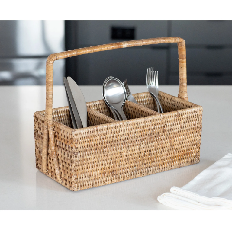 The tight weave of our rattan cutlery holder/caddy will allow you to take it anywhere and store not only your silverware but anything else such as art supplies, sewing kits, or to help reduce the clutter on your desk.