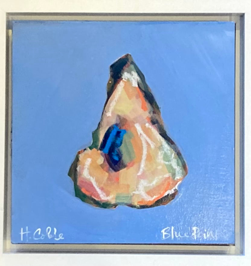 An original painting by a local artist, this abstract oyster painting in a white floater frame will complement any space. From placing on your mantle, to a bookshelf or console, it also comes wired for easy hanging.
