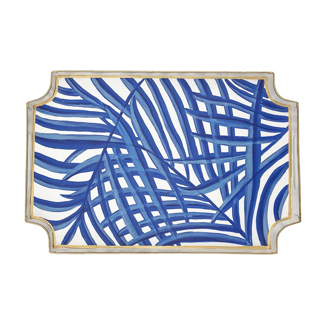Blue & White Decorative Palm Tray with Gold Accents