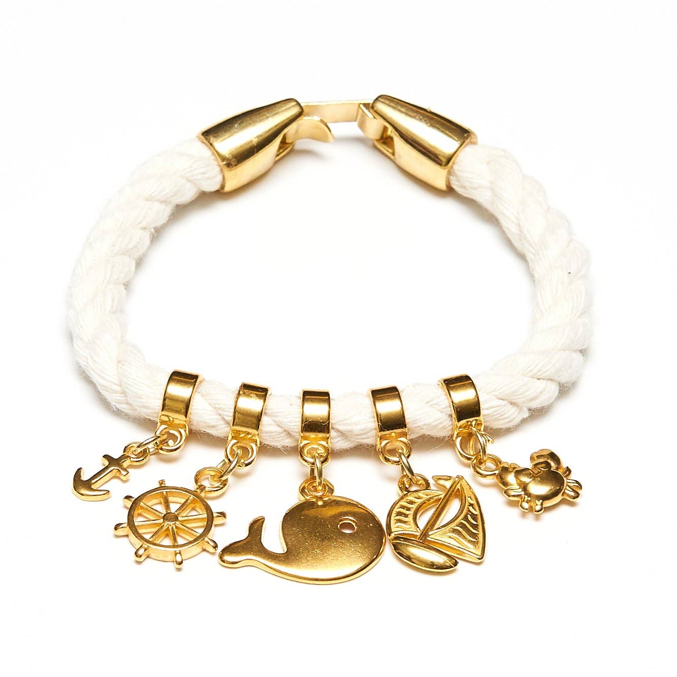 Nautical themed charms including an anchor, helm, whale, sailboat, and crab.