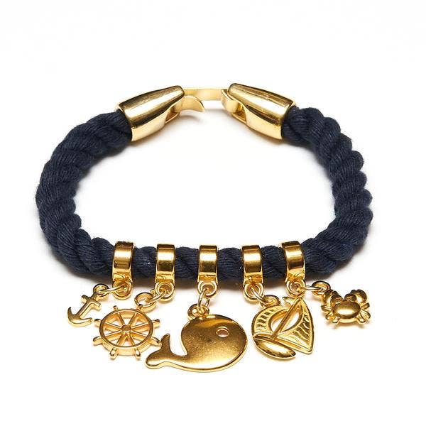 Nautical themed charms including an anchor, helm, whale, sailboat, and crab.
