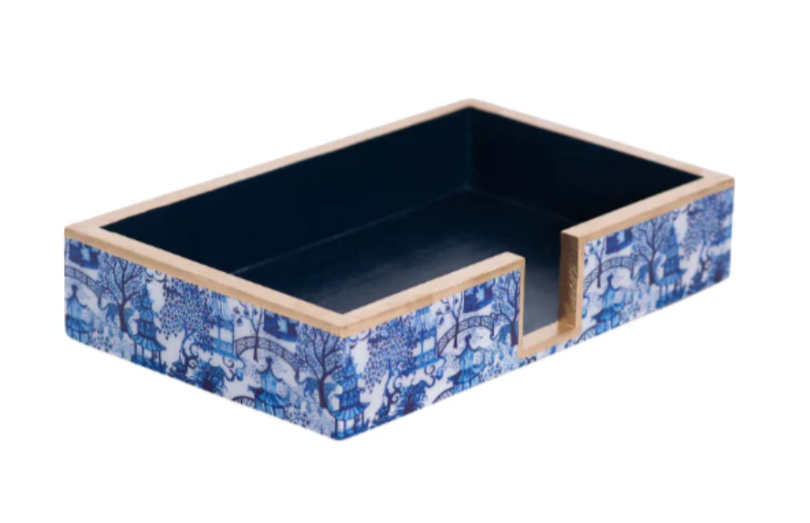 An elegant accessory to any powder room, this guest towel holder tray makes a classic statement. Crafted from mango wood and wrapped in artist-designed motifs, it also functions perfectly as a drawer organizer.