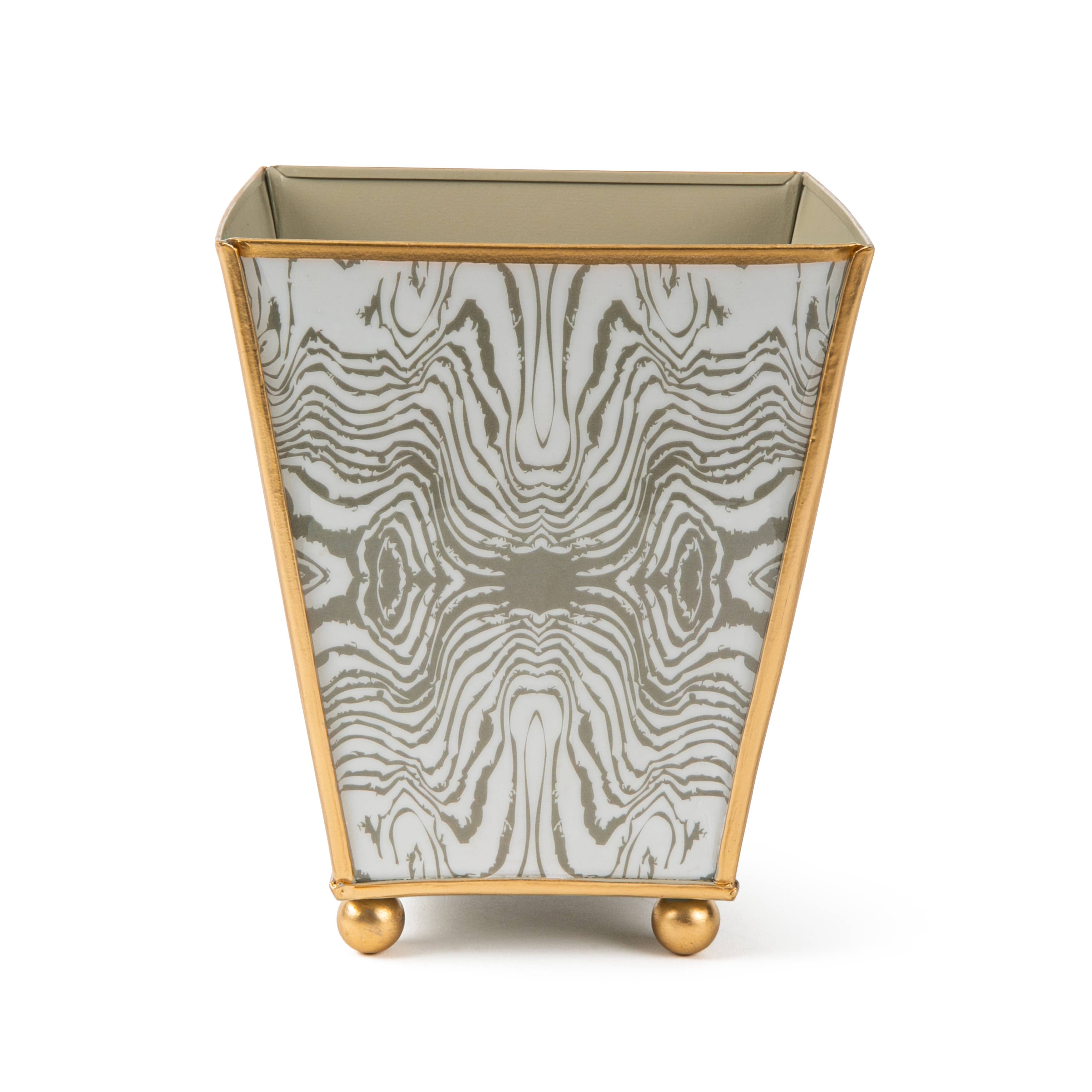 Faux Bois 4" Enameled Square Cachepot