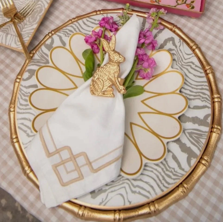 Elevate any table setting with these elegant charger plates. Crafted with a high-quality metal base, the patterns are skillfully hand applied to each piece. Each charger is trimmed with lavish gold detail and finished with a protective coat to prevent wear. They will add a touch of opulence to any table setting.