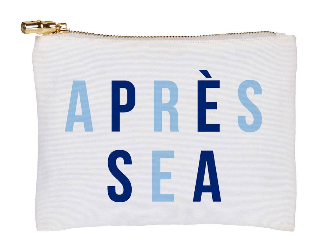 The perfect accessory for any boater, this fun "Apres Sea" clutch is a conversation starter! Adds the right amount of sparkle with gold zipper and bamboo zipper pull.