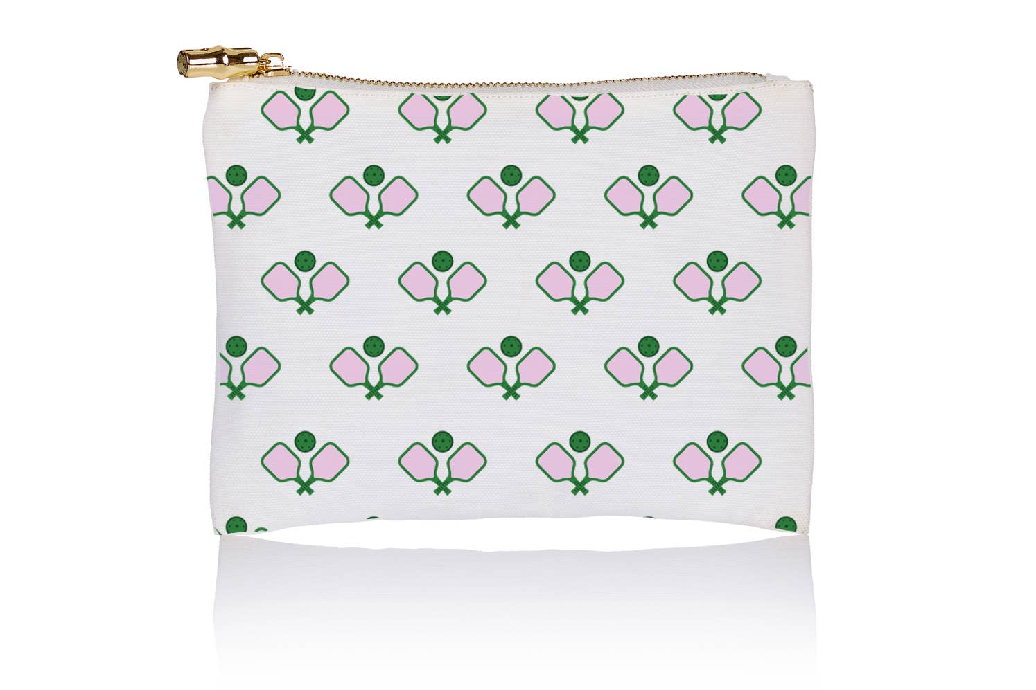 The perfect accessory for any pickleball player! This zipper clutch adds style on and off the court! Adds the right amount of sparkle with gold metal zipper and bamboo zipper pull.