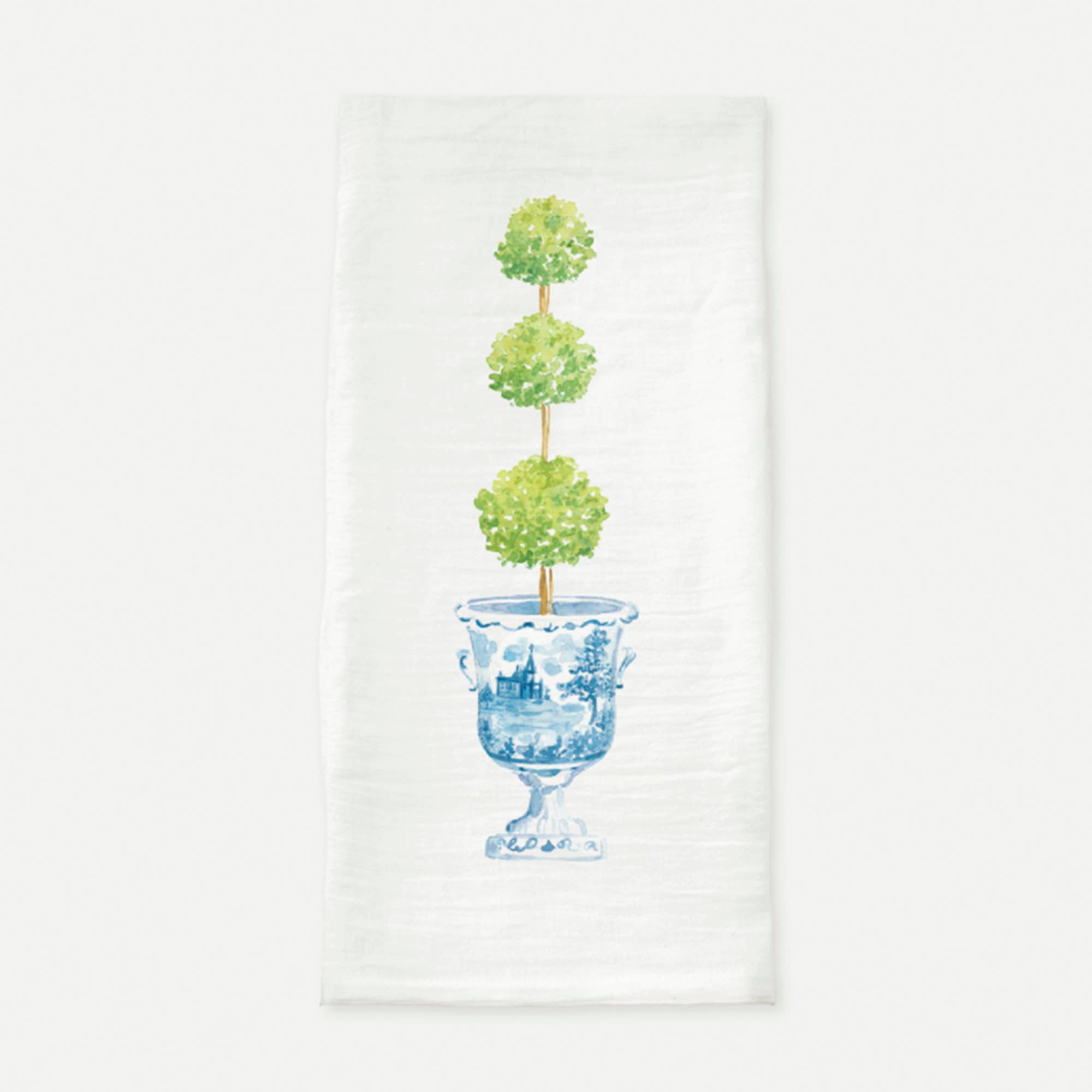 Add a touch of chinoiserie chic style to your kitchen or bar cart with this cheerful Ginger Jar Topiary tea towel! It’s sure to brighten your day each time you see it hanging in your home.