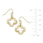 Enjoy the beauty of these unique Gold Clover Dangle Earrings. Each piece is crafted with the highest quality plating methods, reflecting commitment to elegance and quality. They are handcrafted by experienced artists in San Antonio, TX. Whether for a special occasion or everyday wear, these earrings will add a touch of sophistication to any outfit.