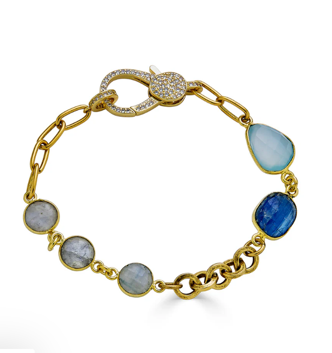 The perfect bracelet for mixing and stacking, this gold mixed chain bracelet shines with a contemporary design with its moonstone, kyanite and chalcedony gemstones. Expertly crafted and made with a modern appeal, wear this delightful piece to elevate a casual look.
