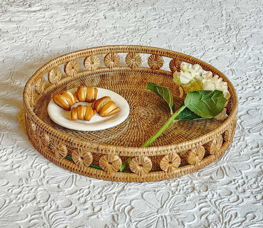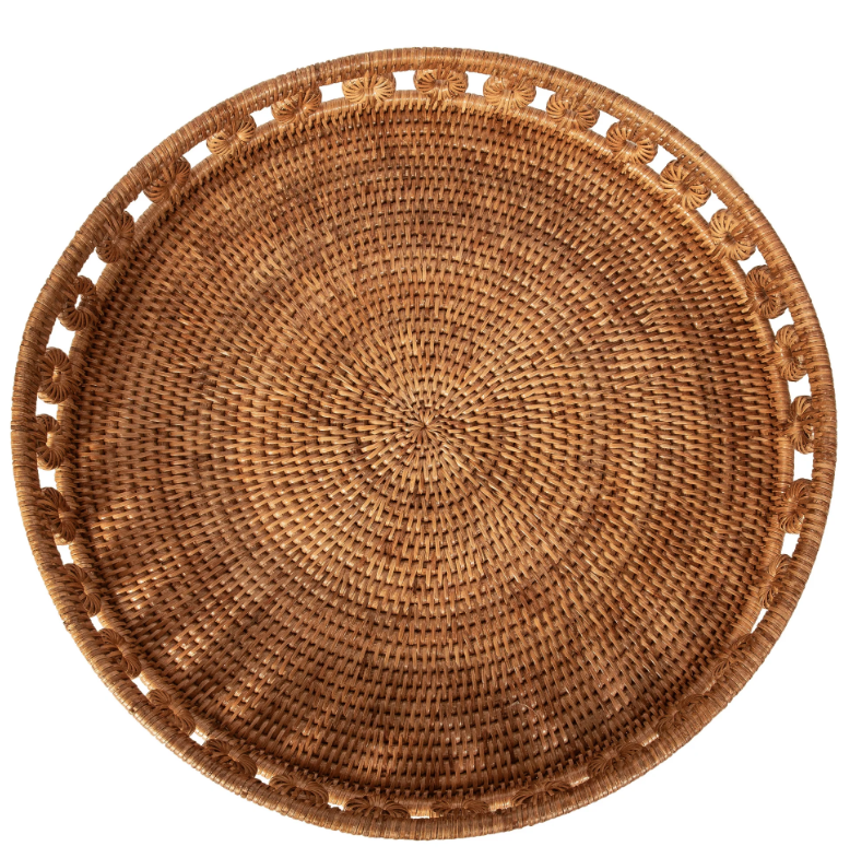 Beyond a simple serving tray, this gorgeous rattan round tray is a multipurpose addition that will elevate your entertaining skills. It can be used to hold drinks, present desserts, serve appetizers, and even show off jewelry. In addition to being useful, this tray adds a striking ornamental element to your coffee table or dining room centerpiece.