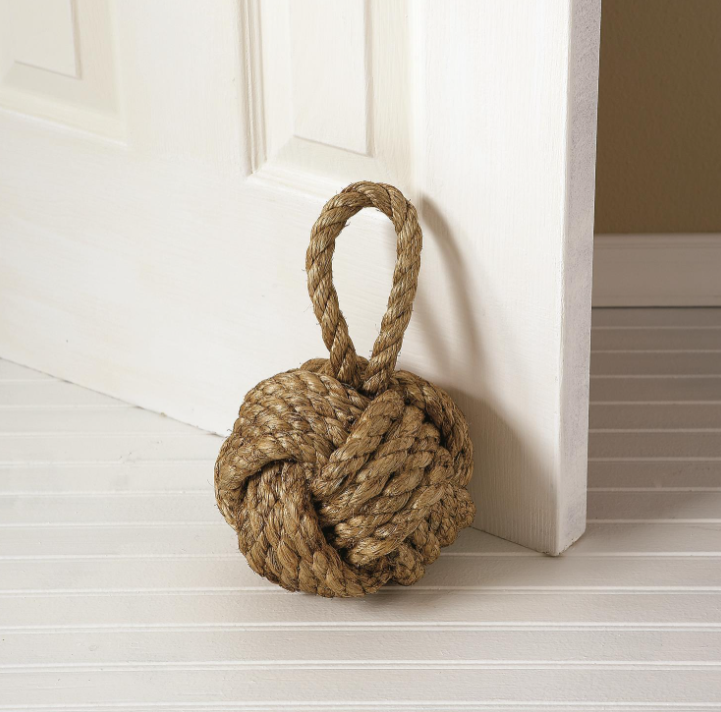 What a functional piece of nautical dècor. Old knot done on boats turned into a unique door stop. Made of natural jute, it is a perfect accessory for any home.