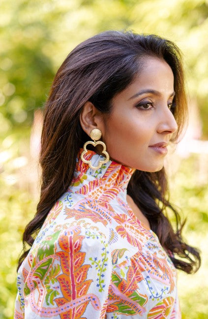 Add a little glam to any outfit with these chic gold statement earrings! A fabulous way to dress up any look!