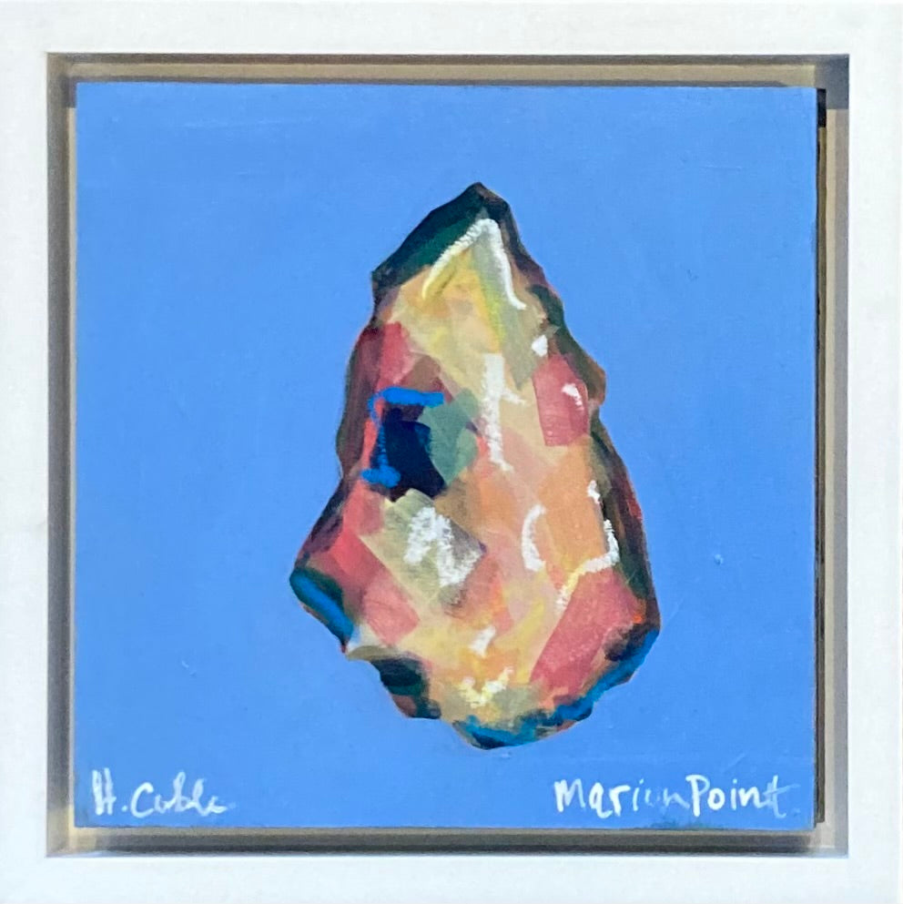 An original painting by a local artist, this abstract oyster painting in a white floater frame will complement any space. From placing on your mantle, to a bookshelf or console, it also comes wired for easy hanging.