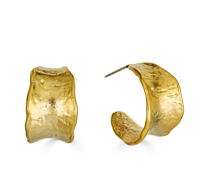 A unique pair of hoop earrings, this pair features an irregular shape and design that adds captivating detail to your look. Elegant in their simplicity, these hooped earrings are an upgrade to a true classic that will complement any casual look.