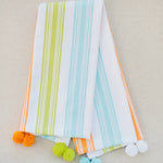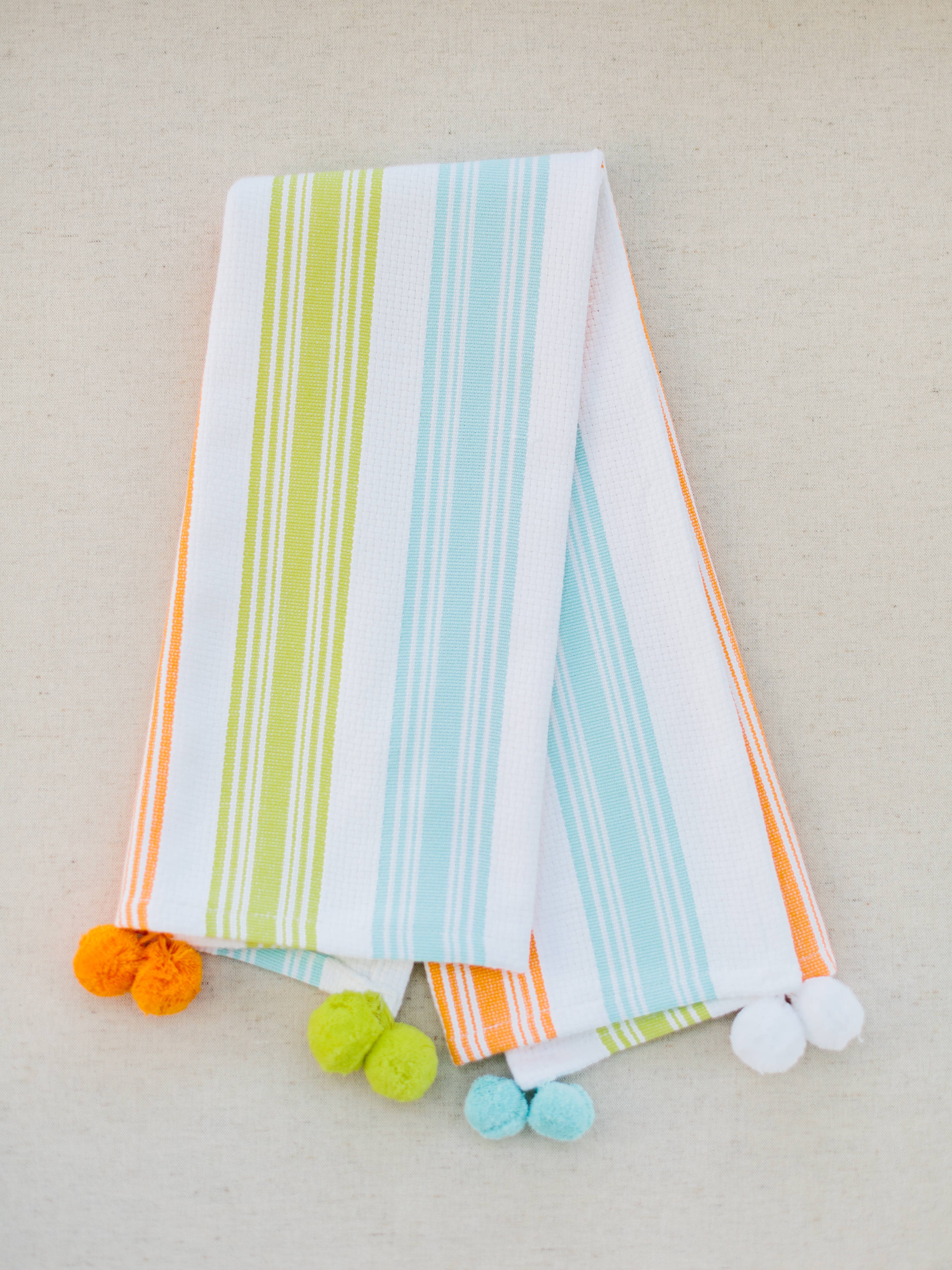 Add a touch of whimsy and flair with this colorful kitchen towel! Adorned with mini pom poms, it will add cheer to any space. A perfect addition to any home, and makes a wonderful hostess gift!
