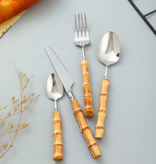 Elevate your dining experience with our Natural Bamboo Flatware Set, blending classic charm with a modern touch for a timeless elegance at your table. Crafted with care, each piece embodies the warmth and simplicity of natural bamboo, creating a dining atmosphere that feels both inviting and stylish. Immerse yourself in the joy of every meal with this thoughtfully designed flatware set that adds a touch of nature to your dining space. Embrace the classic-meets-modern aesthetic and make each dining moment a celebration of taste and style.