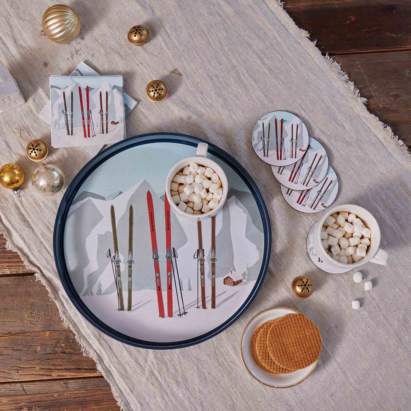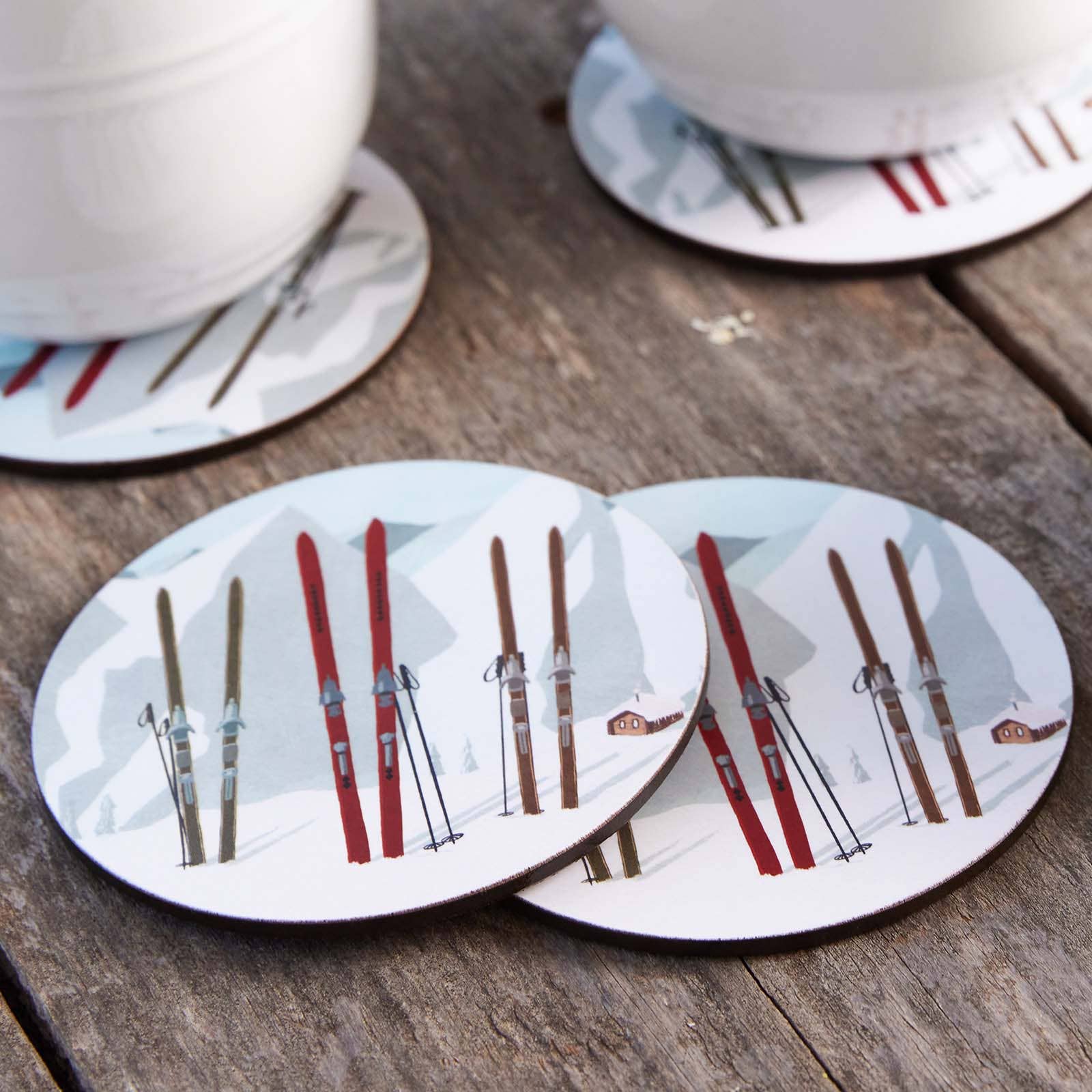 These coasters featuring a classic ski design are perfect for any cozy winter gathering. They come in a lovely gift box and make a great hostess gift!