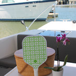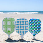 Drawing inspiration from the quintessential Palm Beach style, this pickleball paddle brings to mind everything that the fashionable island is celebrated for - from its towering palm trees and elegant bamboo accents to the vibrant patterns of Lily Pulitzer dresses and the luxury of poolside cabanas. Adorned in a fresh green hue, the Palm Beach Chic paddle adds a touch of sophistication and flair to your game, embodying the panache of Palm Beach in every swing.