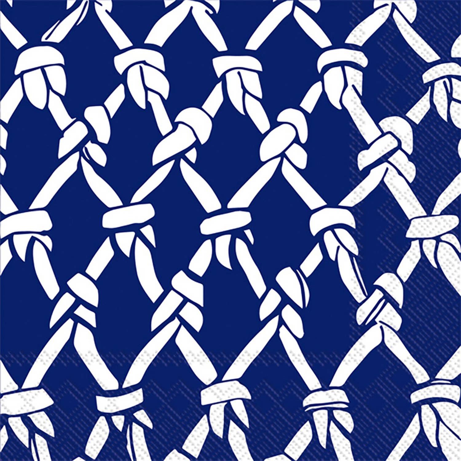 Entertain in style with these lunch or dinner paper napkins! With a classic white net design on a blue background, they are perfect for any table setting!