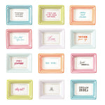 Clever quotes are front and center in this set of 12 mini porcelain trays. Lovely as decorative accents or a place to store small items, the designs are bright, colorful, and finished with a shimmering gold outline.