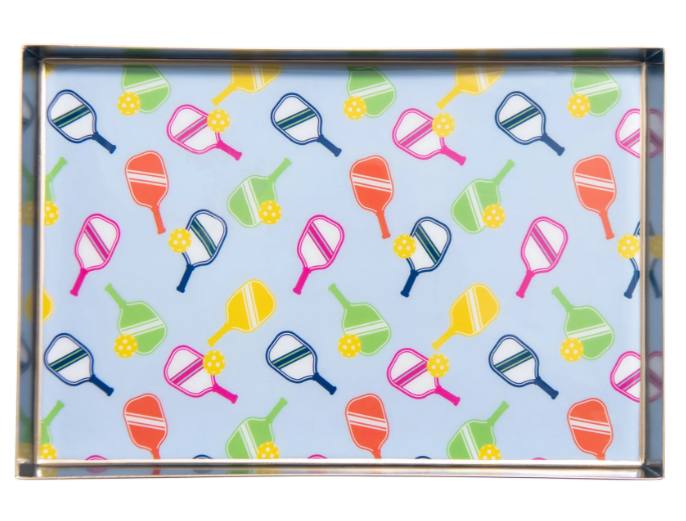 The perfect accent piece for a pickleball player! This tray may steal the spotlight, be it on a coffee table, countertop, or dining table. It sets the stage for delightful arrangements of candles, flowers, photo frames and decorative objects plus functionally organizes car keys in your entry hall and hosts your favorite fragrances as a vanity tray. With its versatility and charm, it is an ideal choice for gift-giving too!