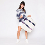 The perfect tote for any outing! It features a navy and pink strap, and is both stylish and functional for any occasion.