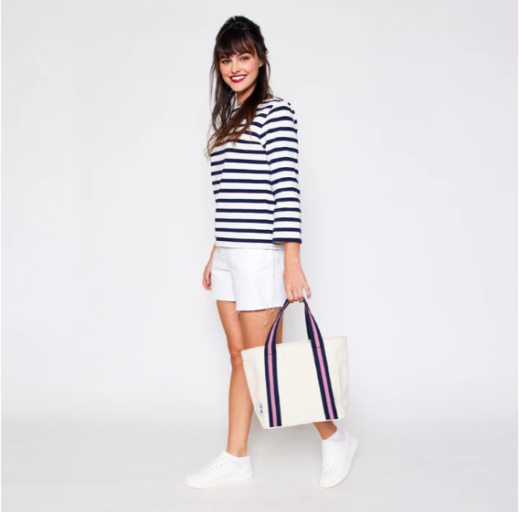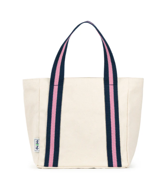 The perfect tote for any outing! It features a navy and pink strap, and is both stylish and functional for any occasion.