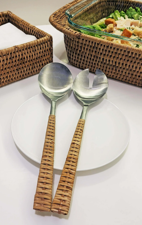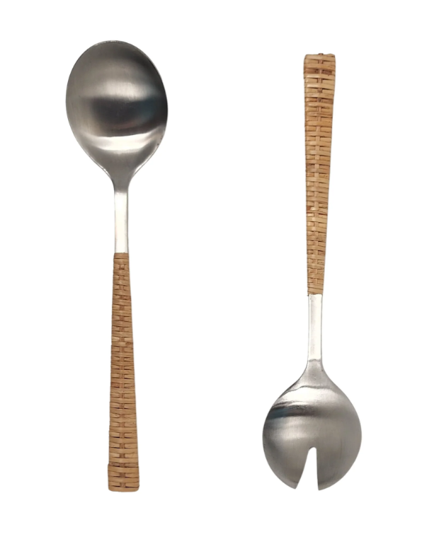 Rattan Stainless Steel Serving Pieces (Set of 2)