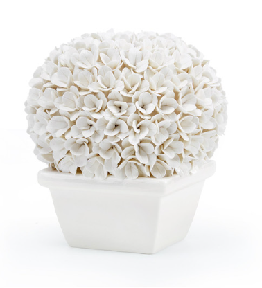 Finally, a beautiful plant that you don’t have to remember to water. This round boxwood topiary is an everlasting floral accent, rendered in Blanc de Chine porcelain and brought to life in stunning detail by our meticulous artisans. Each delicate leaf is crafted by hand before coming together to form a wonderfully realistic arrangement, made elegantly minimal by its all-white finish. The leaves of the topiary boast a textured matte finish, distinguishing the form of the plant from its glossy built-in pot. Place on any shelf or surface calling for a bit of romanticism à la the grand French gardens of the past.