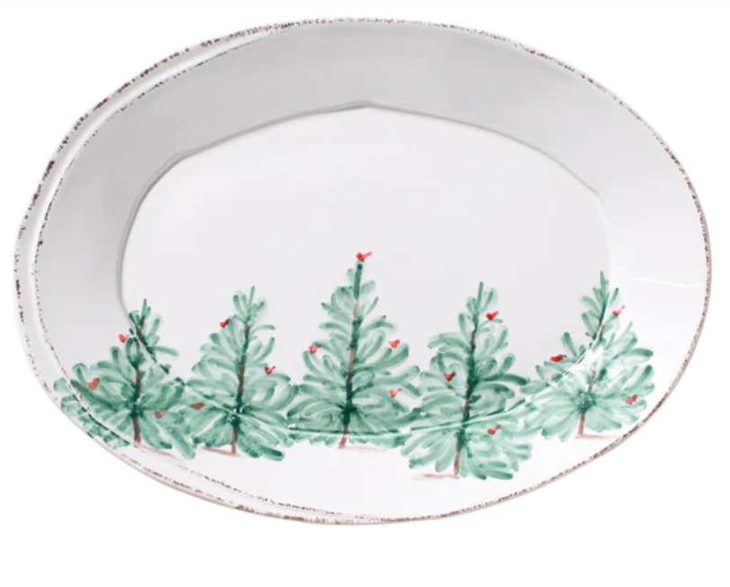Delight in the magic of the holiday season with the Lastra Holiday Small Oval Serving Platter. Whether you are hosting a winter brunch or a Christmas dinner, this collection is the perfect complement to your holiday decor. Handpainted on Italian stoneware in Tuscany.