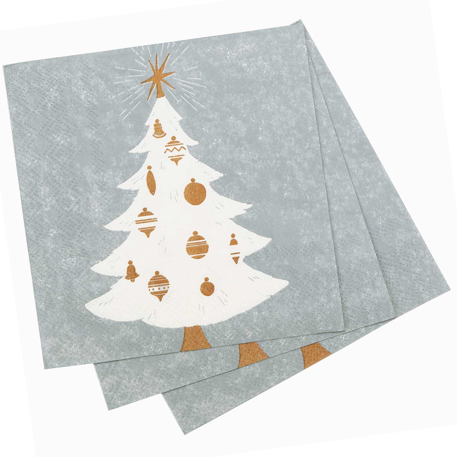 This set of 20 paper napkins are perfect for casual festive gatherings. Featuring a white Christmas tree with gold ornaments, you can feel good about using these cocktail napkins as they are earth friendly. These napkins bring an added touch of fun to any cocktail hour! Also, makes a great hostess gift!