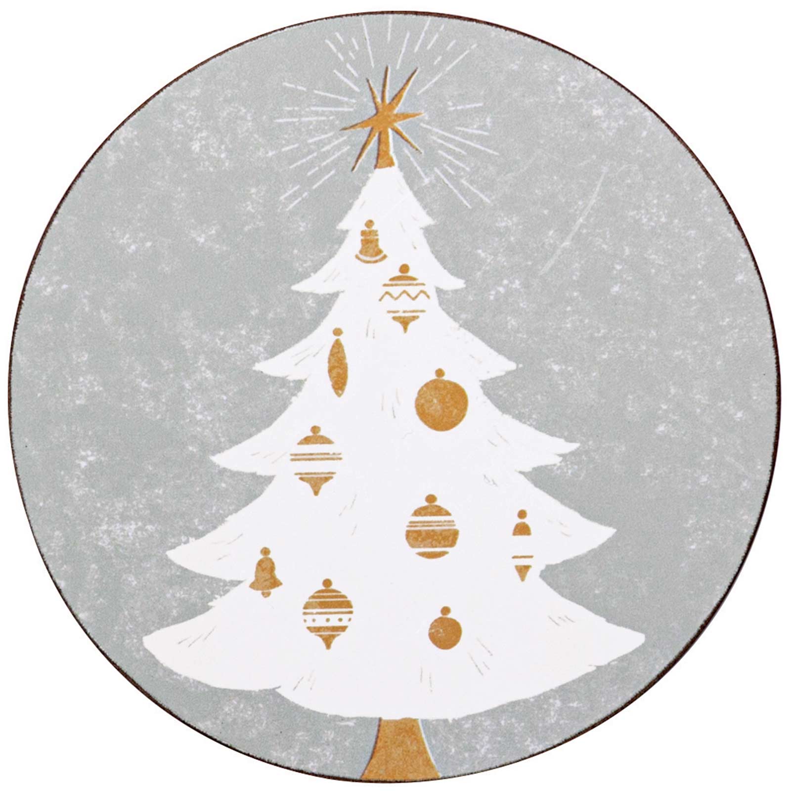Perfect for the holidays, this set of four round coasters features a bright white Christmas tree with gold ornaments. These coasters are scratch-resistant, and the cork-backed set is great for entertaining! The set of 4 comes in a nice box perfect for gifting.