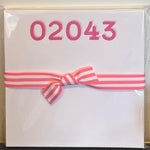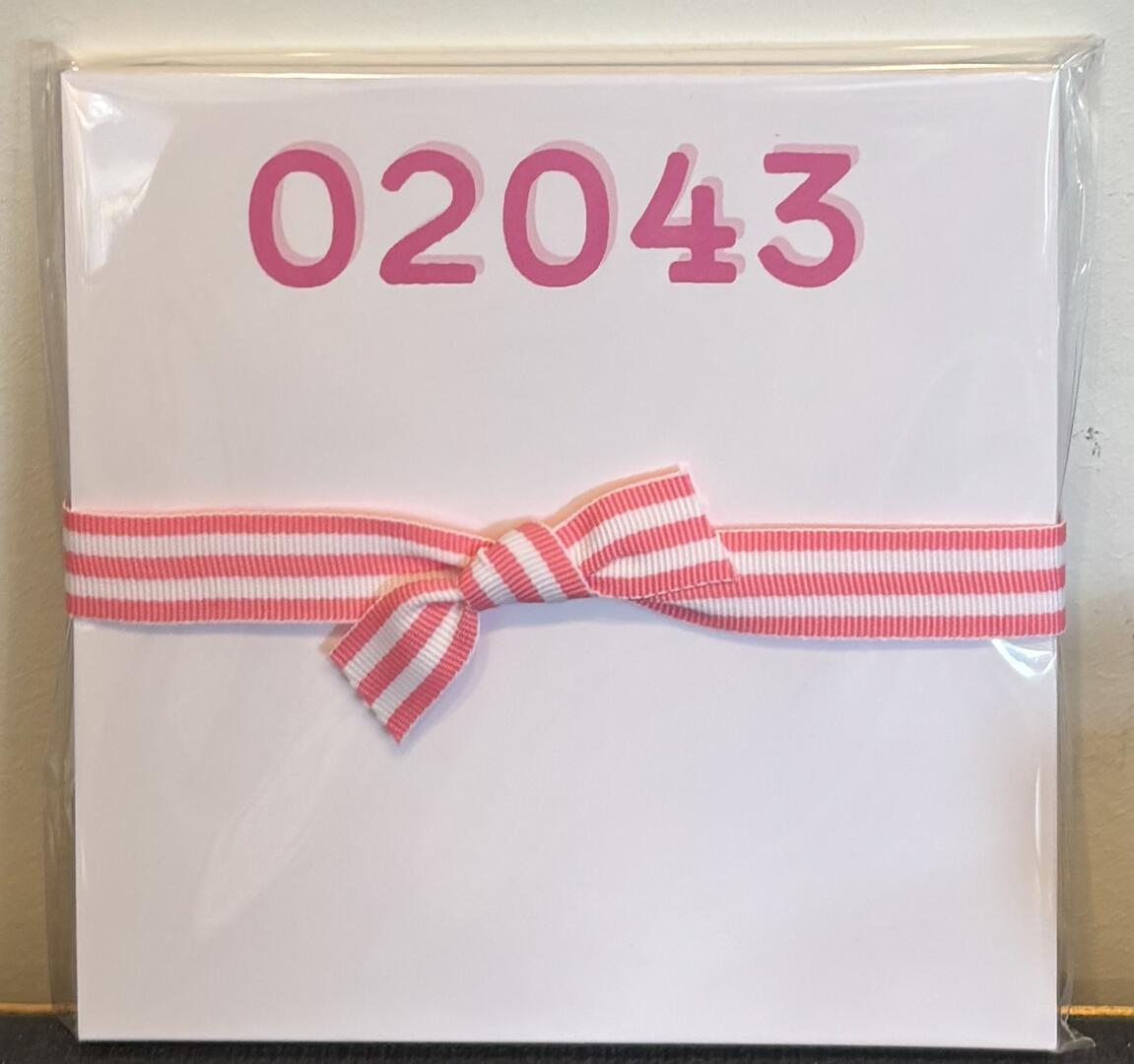 Show your Hingham 02043 pride with this Doodle Notepad! Choose from a variety of colors, this notepad measures 5.5 "x 5.5" and includes 50 sheets. Each notepad is glued at the top for easy tear off sheets. Notepads are packaged in a clear bag and tied with a grosgrain ribbon.
